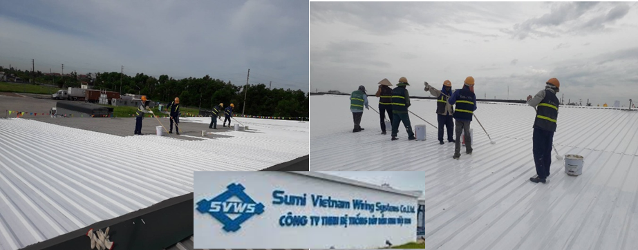 + 屋根用遮熱塗料施工Sơn chống nóng mái tôn ( 1.800m2)